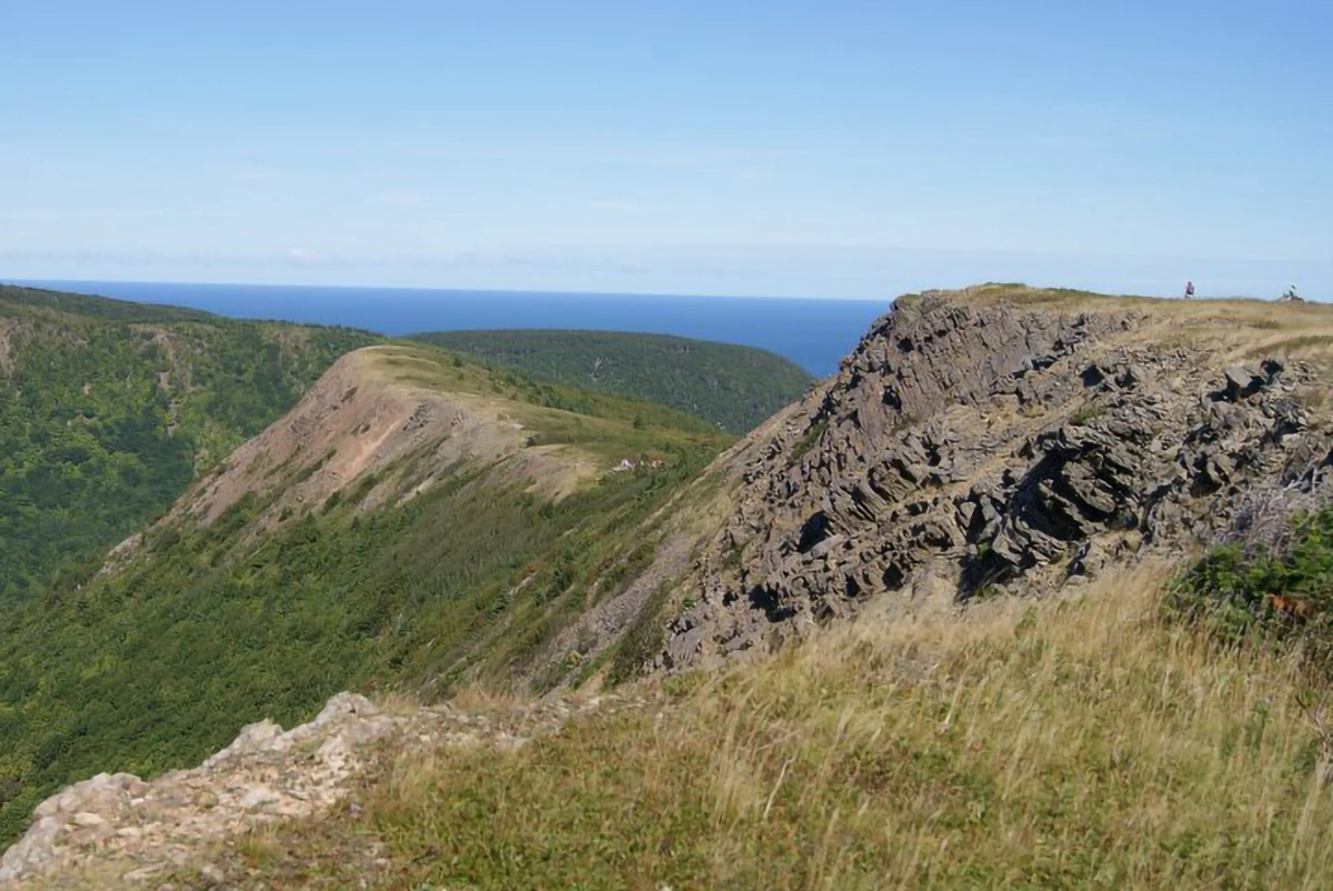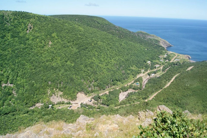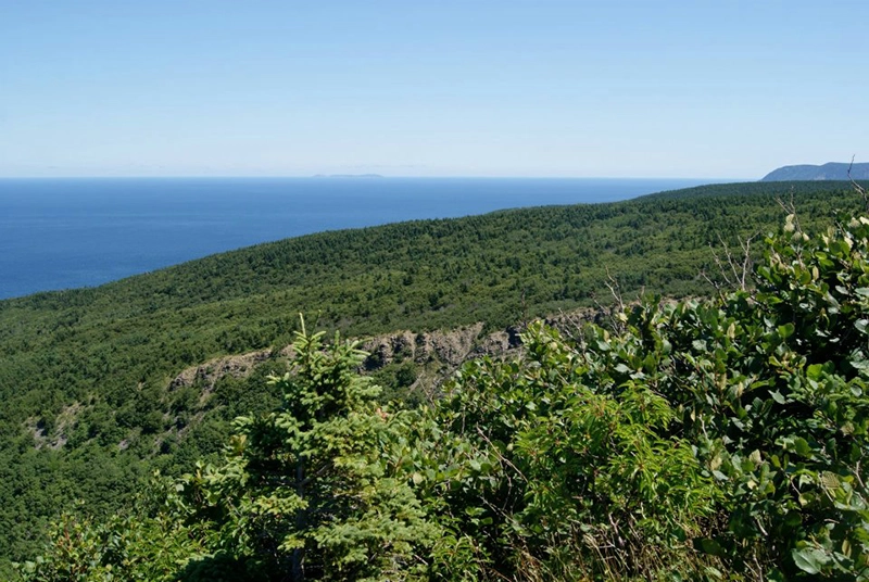 This 3.5 km “up”-and-back hike starts near the entrance to the community of Meat Cove and climbs steadily through birch and spruce forest before breaking onto an open, grassy ridge. The climb is steep in places, gaining 233m over 3/4km, but the reward is a 360° view of the cliffs, highlands, and endless Atlantic. In late summer, wild blueberries grow along the ridge, drawing both hikers and the occasional black bear.